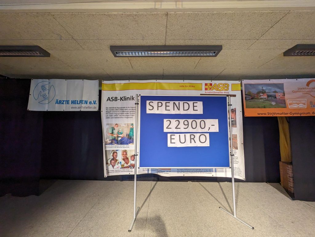 Verkündung des diesjährigen Ergebnisses des Spendenlaufs. Wir sind beeindruckt über die erneute Summe, und das sogar ohne die Teilnahme weiterer Grundschulen, wie es in den letzten Jahren meist der Fall war. Eine großartige Leistung, der gesamte Verein bedankt sich bei allen teilnehmenden Schülern und Lehrern.
